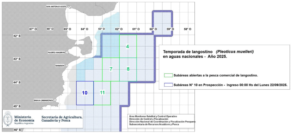 Hoy lunes comenzó la prospección en la Subárea 10, autorizada por la autoridad de aplicación tras el cierre inmediato de tres sectores a mediados de septiembre debido a los elevados niveles de pesca incidental. La tarea se extenderá por tres días con el objetivo de determinar si existen concentraciones de langostino suficientes que justifiquen su apertura a la actividad comercial. En paralelo, se espera la definición sobre la Subárea 5, donde la prospección se inició el viernes pasado.