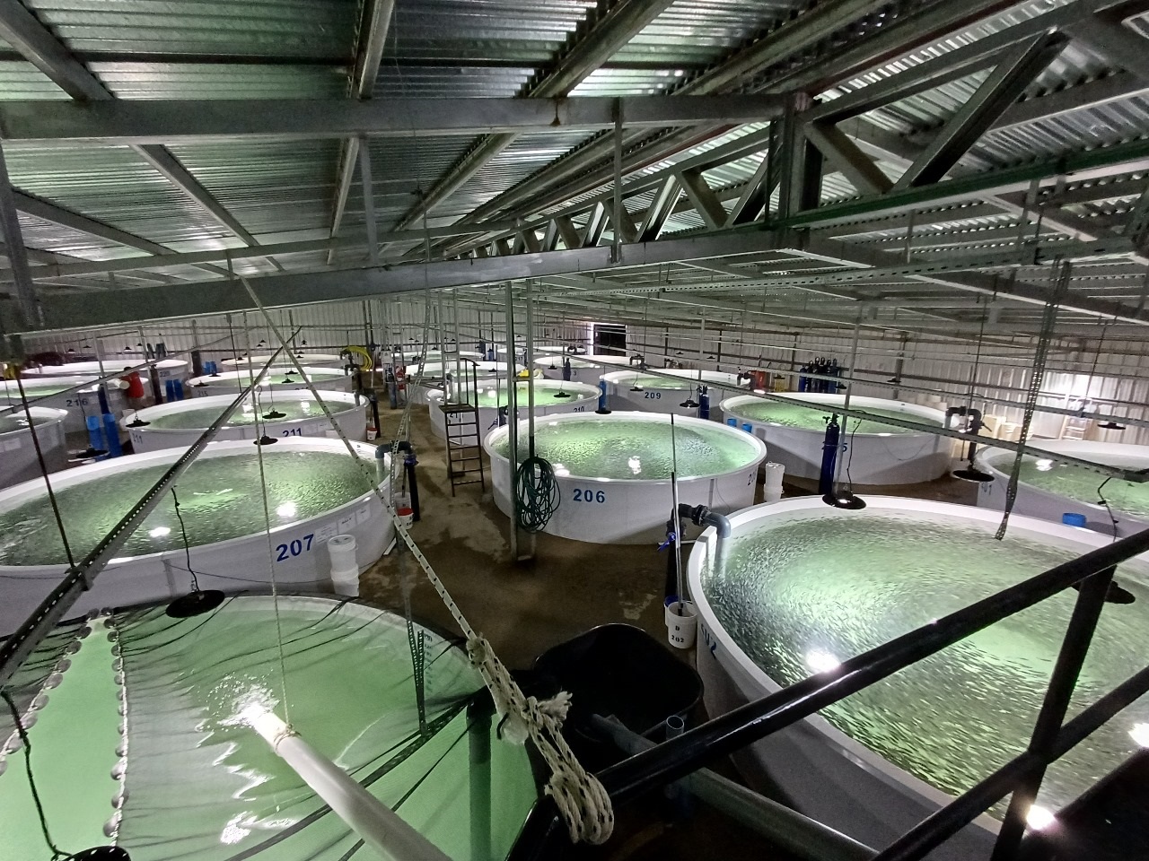 La delegación estuvo integrada por el director Nacional de Investigación, Dr. Otto Wöhler, el director de Información, Operaciones y Tecnología, Lic. Martín Bertelo y el responsable del Programa de Maricultura, Lic. Mariano Spinedi. Los representantes del INIDEP recorrieron las distintas áreas operativas de la empresa, incluyendo las etapas de incubación, alevinaje, engorde en jaulas flotantes y procesamiento industrial.
