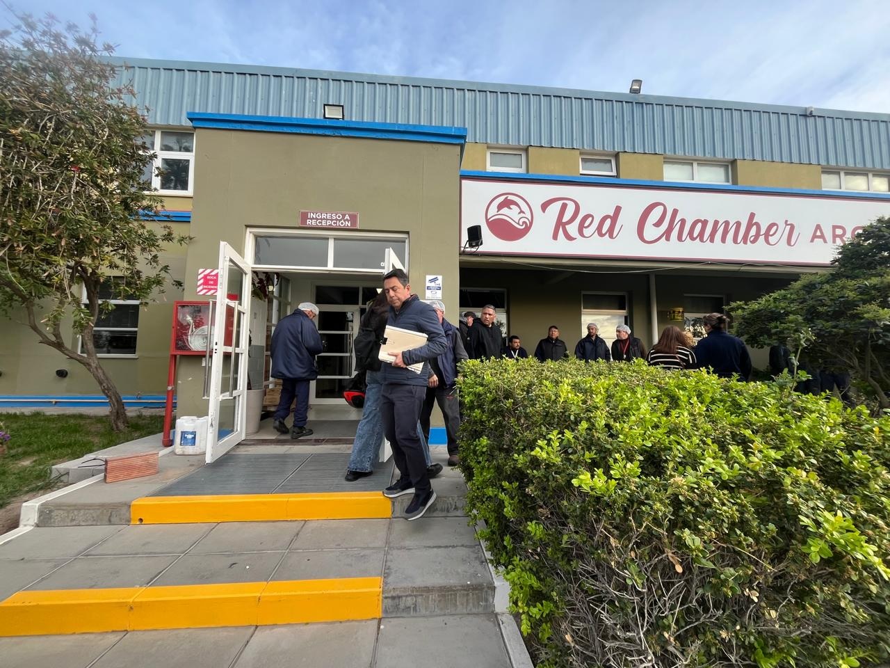 Minutos después de las 8 de la mañana de este miércoles, directivos de Profand arribaron a la planta que hasta ayer arrendaba Red Chamber. Lo hicieron encabezados por Roberto Crespo y acompañados por al Secretario de Pesca, Andrés Arbeletche.